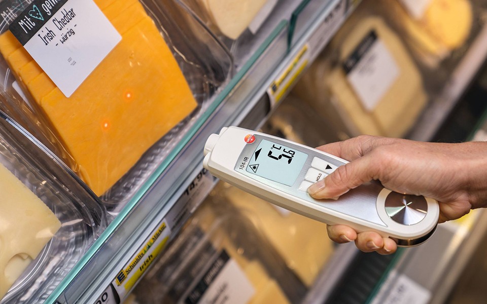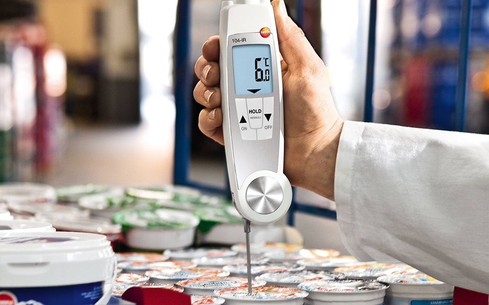 食品收貨,架上陳列食品,食品倉儲,testo 104-IR 食品安全測溫儀為您忙碌的食品日常安全檢查工作提供快速準(zhǔn)確的溫度測量。適用于食品業(yè),餐館以及食品零售業(yè)。