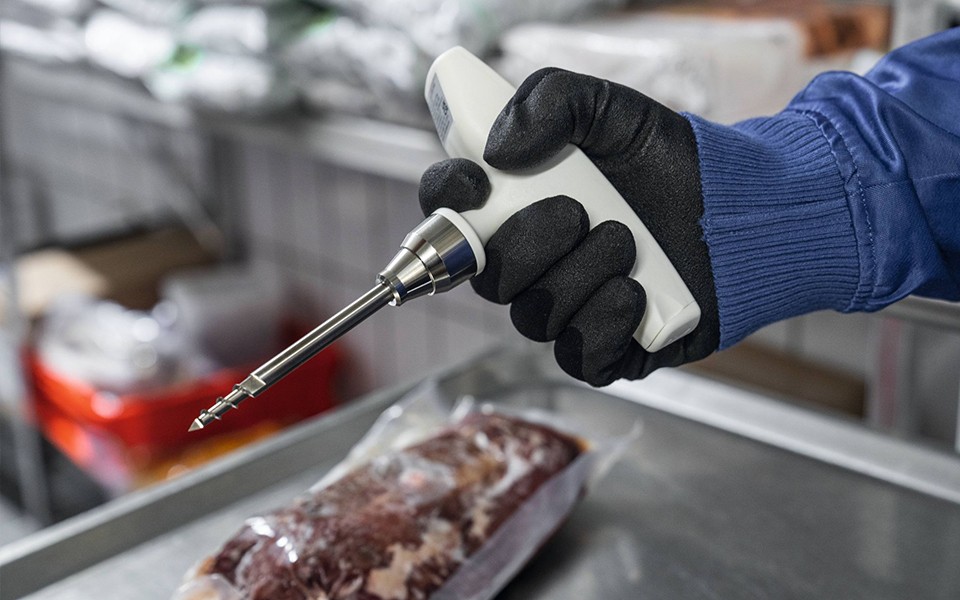 帶有冷凍食品測量頭的手持式溫度計可幫助您準確測量冷凍食品的中心溫度。