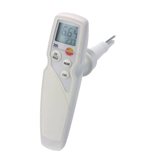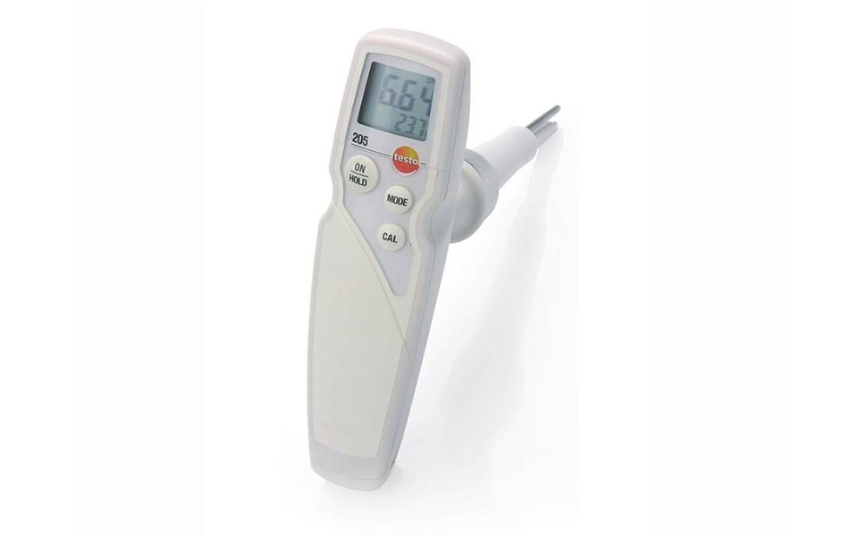使用testo 205進行酸堿度pH值和溫度的測量。堅固的pH浸入式探頭幫助您實現半固體如肉類的測量。