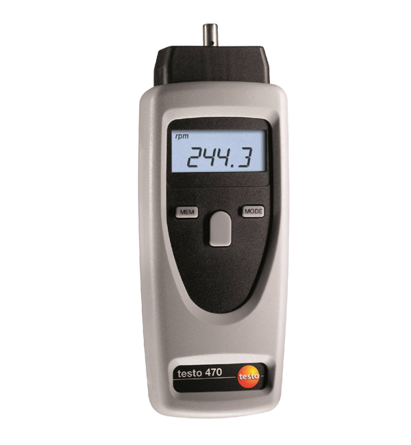 testo 470 精密型光學/機械轉速測量儀,包含保護軟套,反射貼,適配器,探頭尖端,表面轉速盤0.1 m和6"",電池,儀器箱和出廠報告。