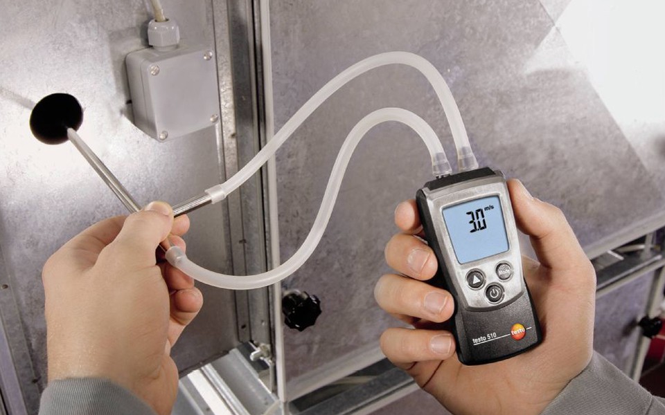 testo 510迷你型差壓測量儀適用于空調系統過濾器前后的差壓測量,選配皮托管后進行通風管道內的風速測量。