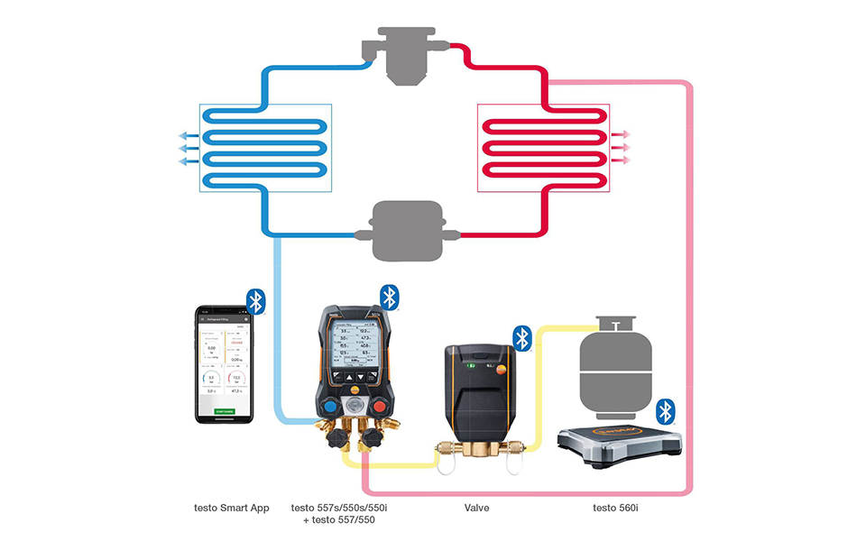 帶有藍牙功能的智能冷媒秤,借助智能電磁閥,通過設置過熱、過冷和重量自動且精確地充注制冷劑。徹底改變了制冷系統和熱泵的制冷劑充注方式。更效率更精確。