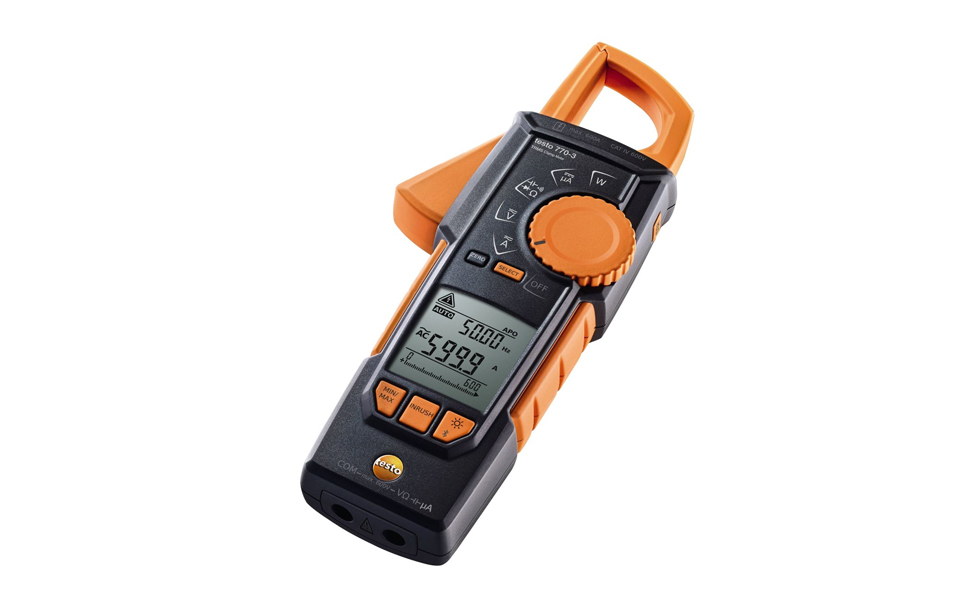 可完全縮回的夾鉗臂,自動 AC/DC,兩行顯示的大顯示屏,真有效值測量,電流、功率和 μA 測量,溫度,藍牙連接結合 testo Smart Probes App 或 testo Thermography App 在智能設備(手機/平板電腦)上顯示測量值,輕松記錄以及通過郵件發送記錄