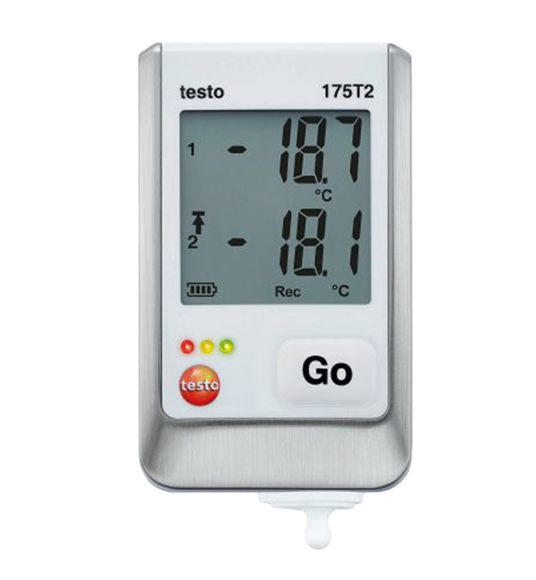 testo 175 T2雙通道溫度記錄儀(內置及外置NTC);可外接1個溫度探頭,同時記錄環境溫度及產品溫度。例如:食品探頭可連續監測食品中心溫度。