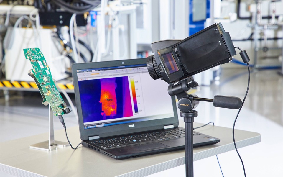 在研究和開發(fā)領(lǐng)域,熱成像儀也用于溫度分布的目標分析,例如:在電路板上的散熱設(shè)計。電路板上的電子元件越來越小,從而增加了散熱方面的挑戰(zhàn)。只有具有非常高像素的高性能熱像儀才能勝任此任務(wù)。如果需要分析在一定時間內(nèi)的捕捉時間的溫升或者冷卻,用于進一步優(yōu)化設(shè)計,可以借助Testo熱像儀的PTA過程趨勢分析功能進行測量。